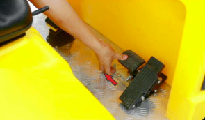 3.雙手握住并控制方向盤,按下加速踏板,駕駛式掃地車開始前進(jìn)并工作。